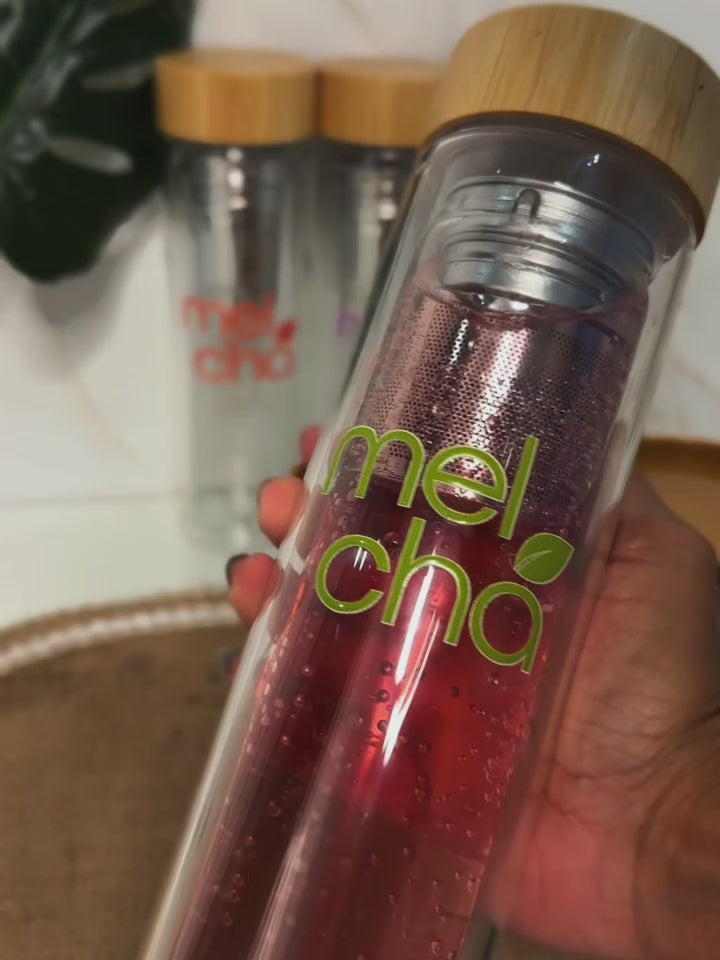 • 1 Garrafa Mel Chá - 500ml - Com Infusor de Aço Inoxidável em 2 Tamanhos e Tampa de Bambu
